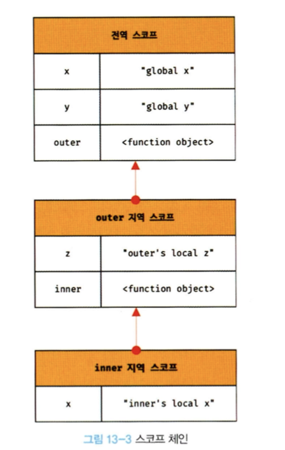 다시말해서 중첩 함수의 지역스코프는 중첩 함수를 포함하는 외부함수의 지역스코프와 계층적구조를 갖는다