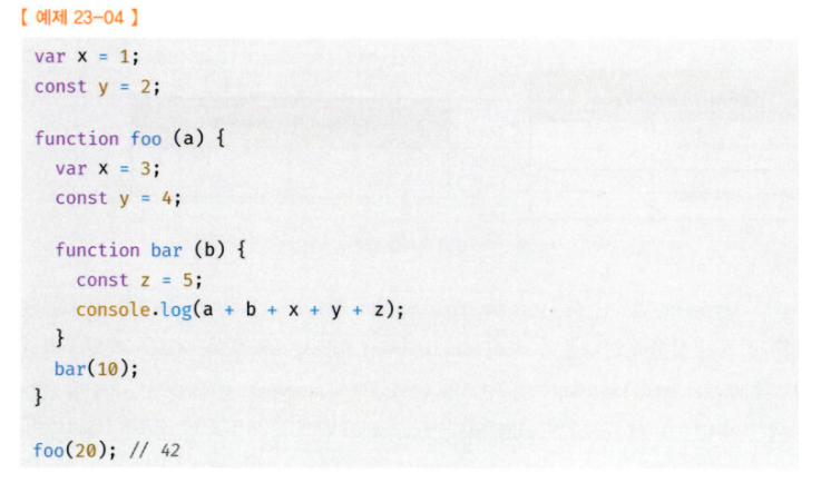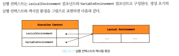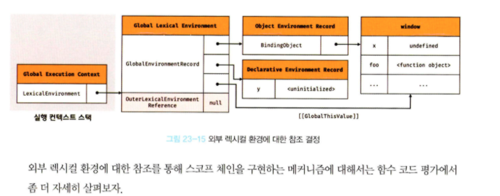 23.5 렉시컬환경에서 보앗듯이 렉시컬환경은 2개의 컴포넌트 , 즉 환경레코드와 외부 렉시컬 환경에대한 참조로 구성
