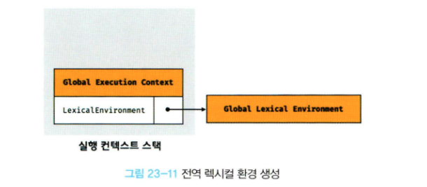 - 전역 렉시컬 환경을 생성, 전역 실행 컨텍스트에 바인딩