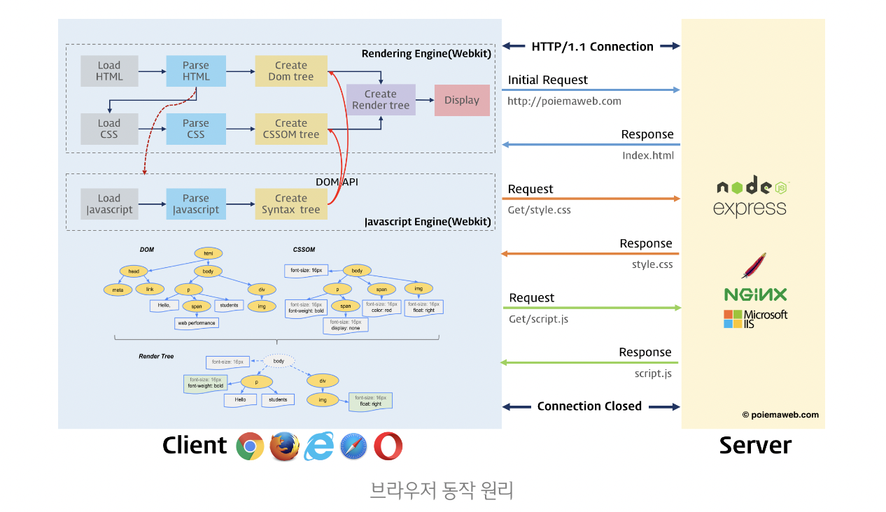 브라우저의 핵심 기능은 사용자가 참조하고자 하는 웹페이지를 서버에 요청하고, 서버의 응답을 받아 브라우저에 표시한다