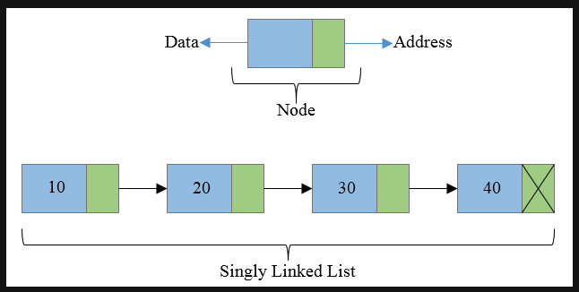 - 위 이미지에서 푸른색 부분은 data 를 저장하고, 초록색 부분은 다음 노드를 가리키는 pointer 역할을 하는 address 부분이다