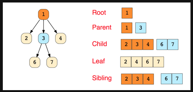 트리는 우리가 아는 나무를 거꾸로 뒤집은 형태, 가장 위는 뿌리 Root, 아래로 가지들이 생기면서 내려온다